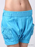 Оригинальные летние шорты зауженного кроя. Выполнены из легкого льняного материала. Отрезной пояс со шлевками, сзади посажен на резинку, спереди украшен кружевной вставкой. Брючины на манжетах, 2 кружевных накладных кармана.