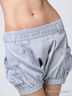 Оригинальные летние шорты зауженного кроя. Выполнены из легкого льняного материала. Отрезной пояс со шлевками, сзади посажен на резинку, спереди украшен кружевной вставкой. Брючины на манжетах, 2 кружевных накладных кармана.