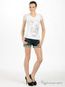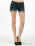 Детали: отрезной пояс со шлевками, треугольная кокетка, застегивается на металлическую молнию и пуговицу, 5 карманов, украшена стразами и кнопками