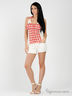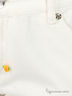 Детали: отрезной пояс со шлевками для ремня, застежка на пуговицу и молнию, два прорезных кармана спереди, два накладных сзади, модель декорирована маленьким атласным цветком и кружевной тесьмой.