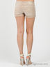 Детали: отрезной широкий пояс со шлевками для ремня, застежка на пуговицы и молнию, два прорезных кармана спереди, два накладных сзади.