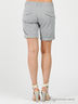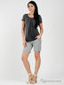 Детали: отрезной пояс со шлевками для ремня, застежка на пуговицу и молнию, два прорезных кармана спереди, два прорезных с клапанами сзади.