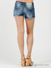 Детали: отрезной пояс со шлевками для ремня, застежка на пуговицы, два прорезных кармана спереди, два накладных сзади.