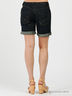 Детали: отрезной пояс со шлевками для ремня, застежка на пуговицы, два прорезных кармана спереди, два накладных сзади, контрастные швы.
