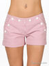 Элегантные женские шорты из плотной хлопковой ткани. Отрезной пояс. Застегиваются на молнию и пуговицу. Прорезной задний карман на пуговице. На передней части изделия декоративый карман-кенгуру, застегивающийся на пуговицы.