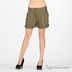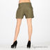 Легкие льняные шорты. Широкий отрезной пояс. Есть шлевки для торнкого ремешка. Застегивается на пуговицы. Четыре кармана спереди - два горизонтальных втачных и два нелдьшиз прорезных кармашка с клапанами на пуговицах. Два прорезных кармана сзади. Брючины с отворотами.