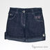 Стильные шорты из джинсовой ткани с блеском, украшенные логотипом производителя из страз.