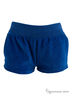 Шорты из трикотажного велюра выглядят весьма экстравагантно благодаря широкому лампасу, выполненному из тесьмы, расшитой пайетками.