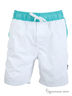 Эти шорты свободного силуэта, построенные на контрасте белого и ментолового предназначены для пляжного отдыха. В них комфортно не только загорать, играть, читать, но и плавать.