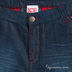 Модель прямого кроя застегивается на пуговицу и молнию. К поясу пришиты шлевки. Два передних кармана, два задних кармана на молнии. Контрастная прострочка, эффект потертости.