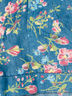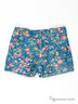 Детали: отрезной пояс со шлевками для ремня, застежка на пуговицу и молнию, два прорезных кармана спереди, два накладных с кнопками сзади, стильный цветочный принт.