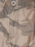 Детали: отрезной пояс со шлевками для ремня, застежка на пуговицу и молнию, два прорезных кармана спереди, два накладных сзади, два кармана на липучке на брючинах.