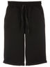 Шорты удлиненные, спереди карманы с отрезным бочком. Сзади один накладной карман. Низ шорт подвернут. В поясе продернут шнур. Изготовлены из петельчатого футера с эластаном.