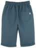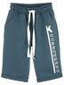 Шорты удлиненные, спереди карманы с отрезным бочком. По боковому печать. Сзади один накладной карман. Низ шорт подвернут. В поясе продернут шнур. Изготовлены из петельчатого футера с эластаном.