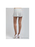 Оригинальные юбка-шорты расклешенного силуэта. Выполнены из приятного на ощупь материала. Отрезной пояс. Застежка на молнию и пуговицу. Модель украшена односторонними складками.