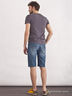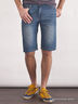 Детали: отрезной пояс со шлевками для ремня, застежка на пуговицу и молнию, два прорезных кармана спереди, два накладных сзади.
