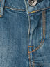 Детали: к поясу пришиты шлевки для ремня, застежка на молнию и пуговицу, по бокам и сзади расположены открытые карманы, низ изделия с прошитым подворотом