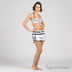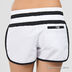 Женские плавательные шорты. Посажены на широкую резинку с кулиской. Сзади прорезной карман на липучке. Сбоку более короткие белые вставки, зрительно удлиняют ноги.
