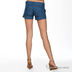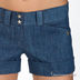 Джинсовые летние короткие шорты с манжетами. Отрезной пояс со шлевками, застегиваются на молнию и кнопки-звездочки, спереди 2 втачных кармана.