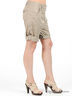 Детали: пояс со шлевками, застегивается на молнию и пуговицы, спереди 2 втачных кармана, сзади прорезной карман на пуговице, низ брючин с отворотами, регулируются по длине