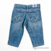Модные джинсовые шорты. Брючины слегка заужены к низу. Спереди функциональная застежка, кармашки по бокам и сзади. Втачной пояс и шлевки под ремень, застежка на молнии и на пуговице.