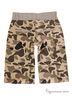 Шорты с застежкой на молнию и кнопку, на внутренней части пояса имеется регулировка по объему, снаружи шлевки для ремня. Два втачных кармана по бокам, один из которых оформлен оригинальной аппликацией в виде свисающих наушников. Сзади имитация прорезных карманов. Модель выполнена из хлопчатобумажного трикотажа разного цвета: впереди однотонные, сзади под камуфляж, край брючин не обработан. Очень комфортный и практичный вариант на лето!
