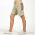 Женские шорты прямого силуэта. Отрезной пояс со шлевками для ремня. Застегиваются на молнию и болт. Два кармана спереди, один сбоку на молнии. Сзади вставка из плотного материала.