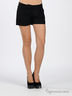 Короткие шорты из плотного шелковистого материала. Широкий отрезной пояс. Есть шлевки для ремня. Застегиваются на молнию и крючок. Два втачных кармана спереди, сзади имитация карманов с клапанами. Прямоугольная кокетка сзади. Спереди декоративные складки.