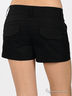 Короткие шорты из плотного шелковистого материала. Широкий отрезной пояс. Есть шлевки для ремня. Застегиваются на молнию и крючок. Два втачных кармана спереди, сзади имитация карманов с клапанами. Прямоугольная кокетка сзади. Спереди декоративные складки.