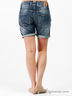 Стильные короткие шорты прямого кроя. Отрезной пояс со шлевками для ремня. Треугольная кокетка. Застежка на пуговицы. 5 карманов.
