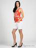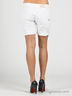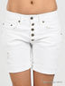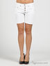 Джинсовые шорты свободного покроя с эффектом потертости. Отрезной пояс. Есть шлевки для ремня. Застегивается на болты. Сзади треугольная кокетка. Пять карманов. Брючины с отворотами.
