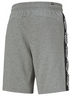 Шорты декорированы принтом с логотипом PUMA, а также лампасами из трикотажа в рубчик с жаккардовым узором с повторяющейся фирменной символикой PUMA. Они посажены на пояс из эластичного материала с внутренним затягивающимся шнуром для оптимальной подгонки по фигуре. Боковые карманы удобны и вместительны. Модель имеет удобную стандартную посадку (9 дюймов в шаговом шве) и изготовлена из материала, в состав которого входит натуральный хлопок, произведенный в рамках инициативы «За лучший хлопок». Кроме того, материал изделия сертифицирован по экологическому стандарту OEKO-TEX.