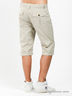 Детали: отрезной пояс со шлевками для ремня, застежка на пуговицу и молнию, два прорезных кармана спереди, два накладных с клапанами сзади, шорты с отворотами.