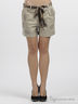 Стильные шорты из плотной хлопковой ткани прямого кроя. Застегиваются на молнию и пуговицу. Втачной пояс со шлевками для ремня. Шифоновый пояс. Два втачных кармана. От пояса выполнены небольшие складки. Шорты декорированы оригинальными нашивками. Простроченный отворот.