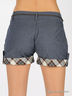 Шорты из легкого шелковистого денима. Фигурная кокетка. Есть шлевки для ремня. Застегиваются на молнию и пуговицу. Два кармана. Хлопковые отвороты. В комплект входит тонкий ремешок-косичка.