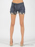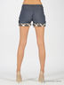 Шорты из легкого шелковистого денима. Фигурная кокетка. Есть шлевки для ремня. Застегиваются на молнию и пуговицу. Два кармана. Хлопковые отвороты. В комплект входит тонкий ремешок-косичка.