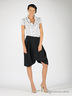 Широкие шорты свободного силуэта. Отрезной пояс со шлевками. Два кармана спереди. Застегиваются на молнию и пуговицу.