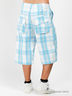 Детали: отрезной пояс со шлевками для ремня, застежка на пуговицу и молнию, два прорезных кармана спереди, совмещенные накладные и прорезные карманы сзади, небольшой кармашек для мобильного на брючине спереди. Стильный принт клетка-тренд сезона.