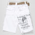 Детали: застежка на молнию и пуговицу, пришиты шлевки, в комплекте ремень, два передних кармана, два задних кармана, два боковых кармана на брючинах, декоративная аппликация