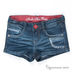 Детали: застежка на молнию и на пуговицу, втачной пояс со шлевками для ремня, два кармана, декорированы крупными контрастными швами и стразами