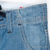 Детали: застежка на пуговицу и молнию, к поясу пришиты шлевки для ремня, спереди два втачных кармана, сзади два накладных, изделие декорировано потертостями