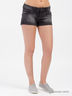 Стильные шорты мини-длины превосходно подчеркнут все достоинства Вашей фигуры. Модель эффектного однотонного оттенка с потертостями отлично гармонирует с различной одеждой. Шорты имеют втачные и накладные карманы, шлевки для ремня.
