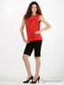 Шорты прямого покроя. Отрезной пояс из атласного материала. Застегиваются на молнию, пуговицу и крючок. Два втачных кармана спереди, два прорезных сзади.