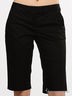 Шорты прямого покроя. Отрезной пояс из атласного материала. Застегиваются на молнию, пуговицу и крючок. Два втачных кармана спереди, два прорезных сзади.