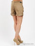 Комфортные шорты из тонкой, плотной хлопковой ткани. Отрезной пояс со шлевками для ремня. Застежка на пуговицу и молнию. Спереди два прорезных кармана и один накладной с застежкой на пуговицу, сзади два накладных. Короткие прямые брючины с декоративными подворотами.