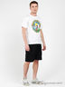 Стильные шорты из тонкой, плотной ткани с укороченной отлетной подкладкой из тонкого сетчатого материала. Неотрезной пояс дополнен широкой резинкой. Пояс декорирован небольшой шнуровкой с завязками. Шорты декорированы крупным красочным рисунком. На брючине накладной карман с клапаном на липучках. Укороченные прямые брючины.