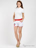 Легкие шорты выполнены из приятного на ощупь материала. В поясе вставка из эластичной резинки, застежка на кнопки и молнию. По бокам расположены открытые карманы.