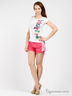 Легкие шорты выполнены из приятного на ощупь материала. В поясе вставка из эластичной резинки и продета кулиска. Изделие украшено яркими вставками.