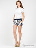 Легкие шорты выполнены из приятного на ощупь материала. В поясе вставка из эластичной резинки. Застежка на кнопки и молнию. Изделие украшено принтом.