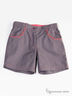 Стильные шорты для маленькой принцессы. Отрезной пояс со шлевками на резинке, застежка на молнию и пуговицу, два кармана. Декорированы контрастной тесьмой.